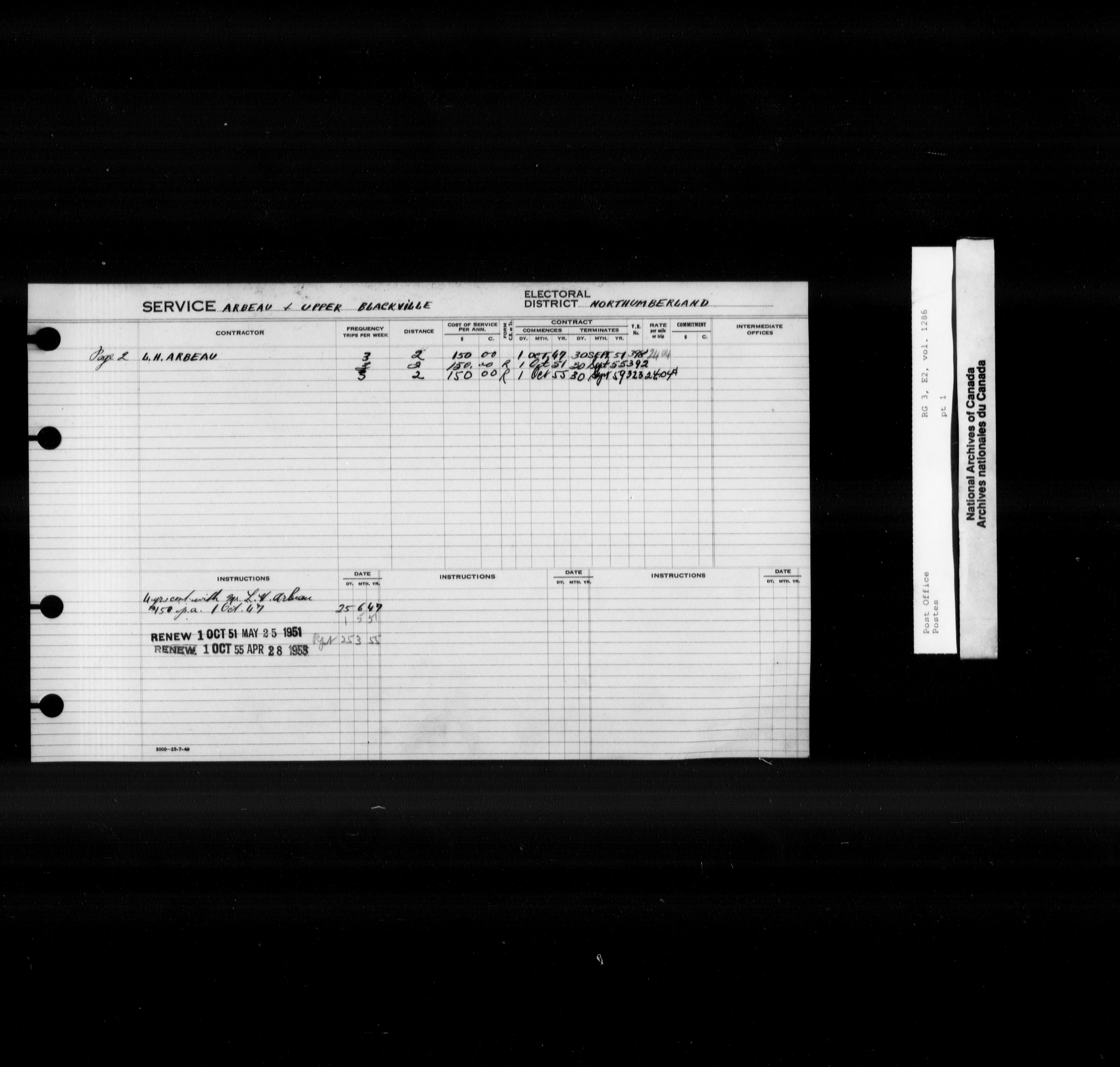 Post Office Department, Transportation Branch : Mail service contract registers, 1839-1980 - 9961