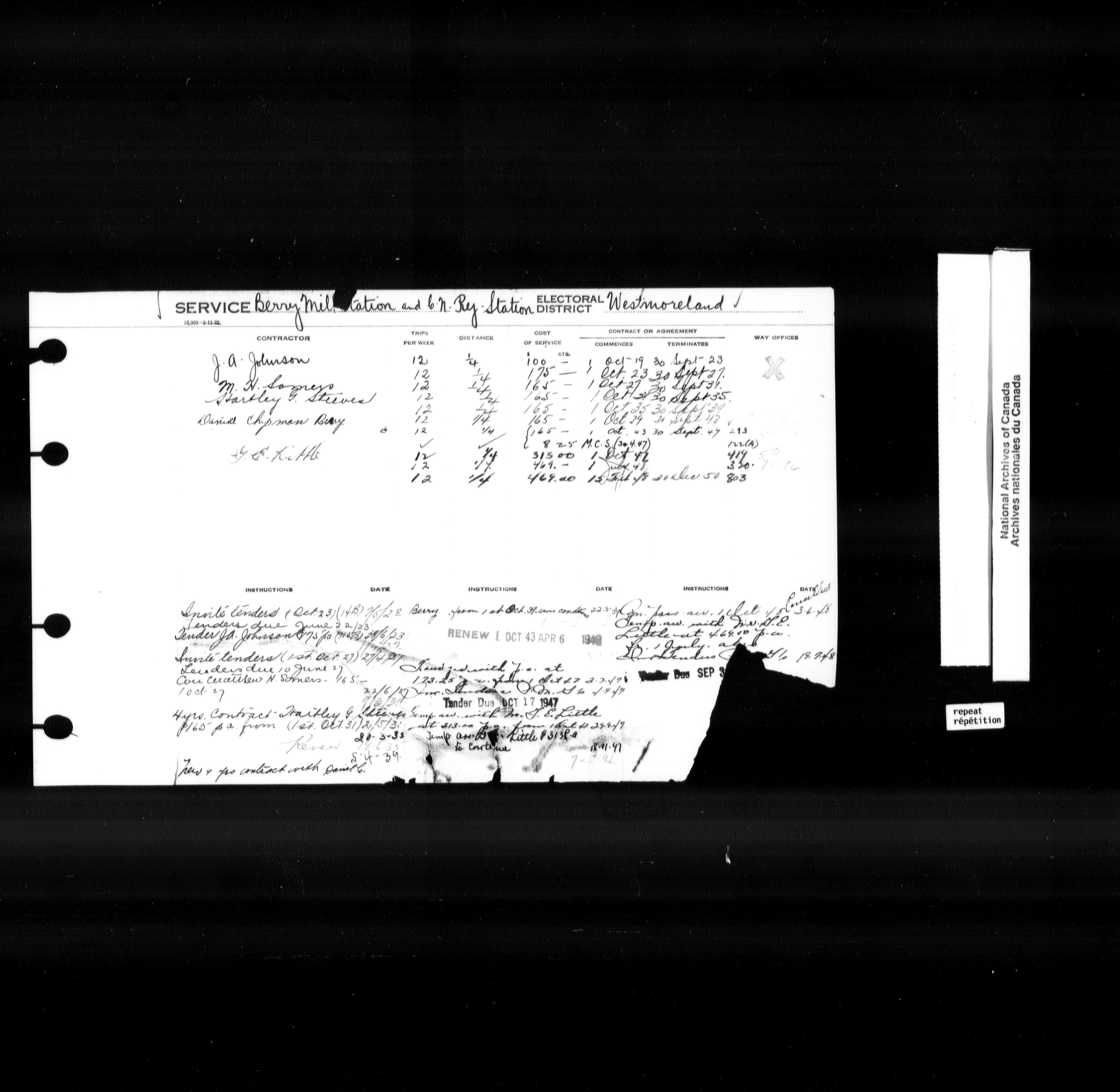Post Office Department, Transportation Branch : Mail service contract registers, 1839-1980 - 9963