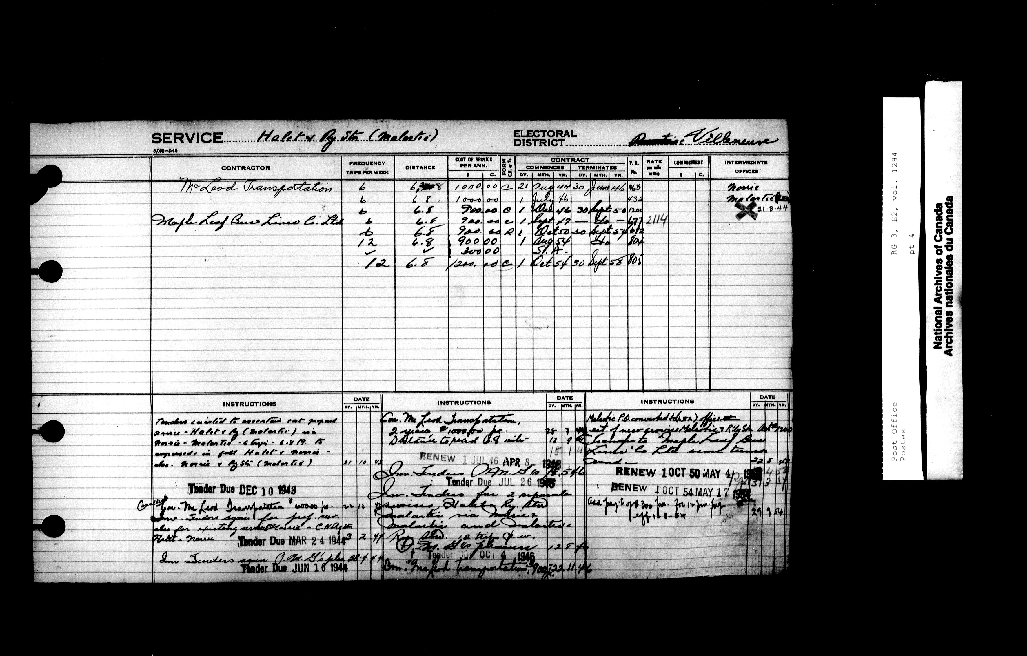 Post Office Department, Transportation Branch : Mail service contract registers, 1839-1980 - 9966