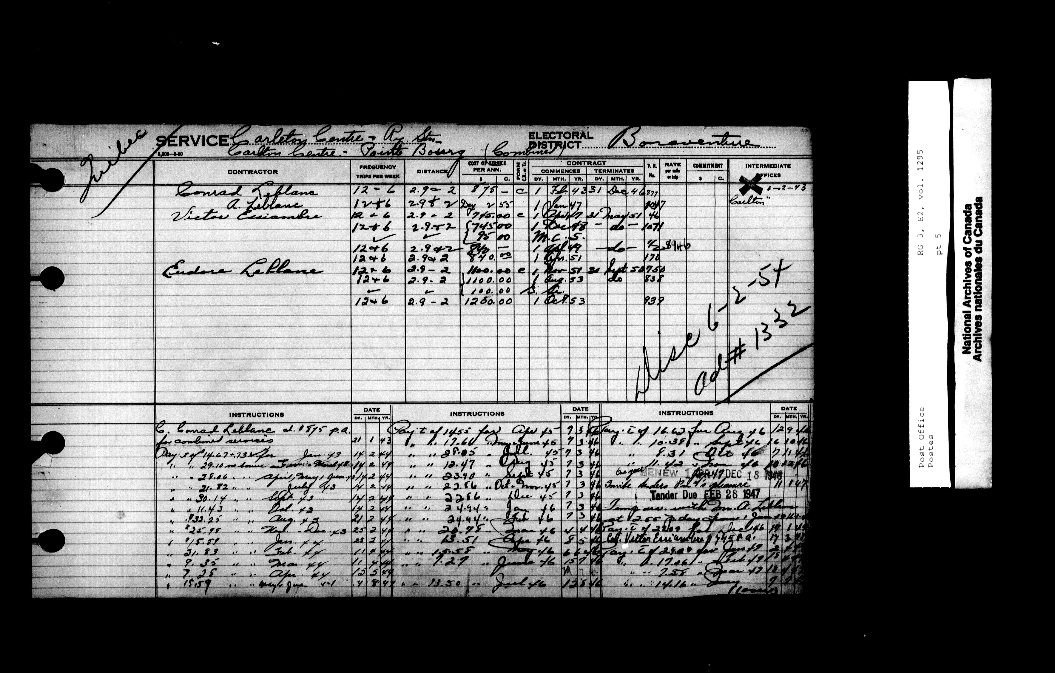 Post Office Department, Transportation Branch : Mail service contract registers, 1839-1980 - 9966