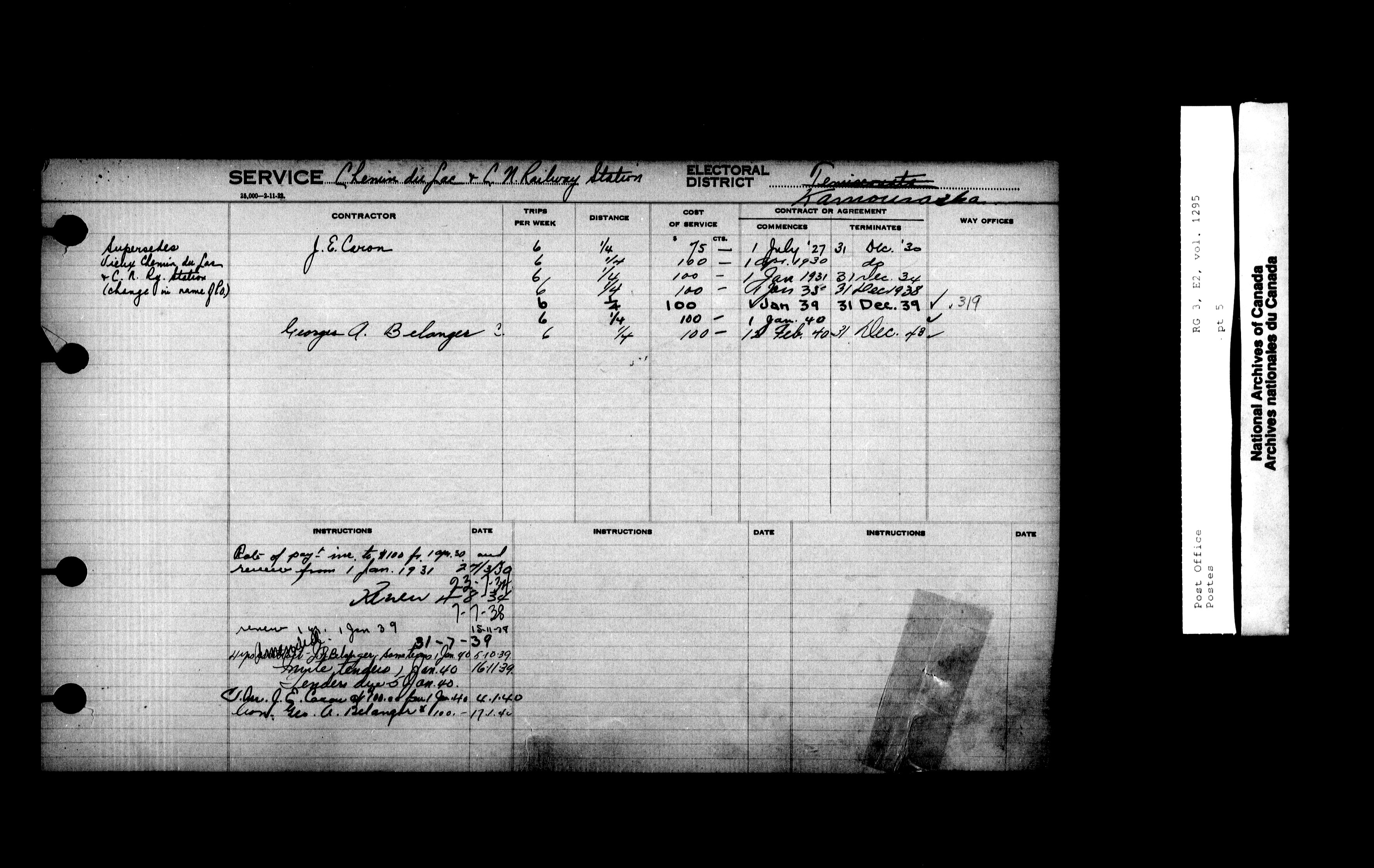 Post Office Department, Transportation Branch : Mail service contract registers, 1839-1980 - 9966