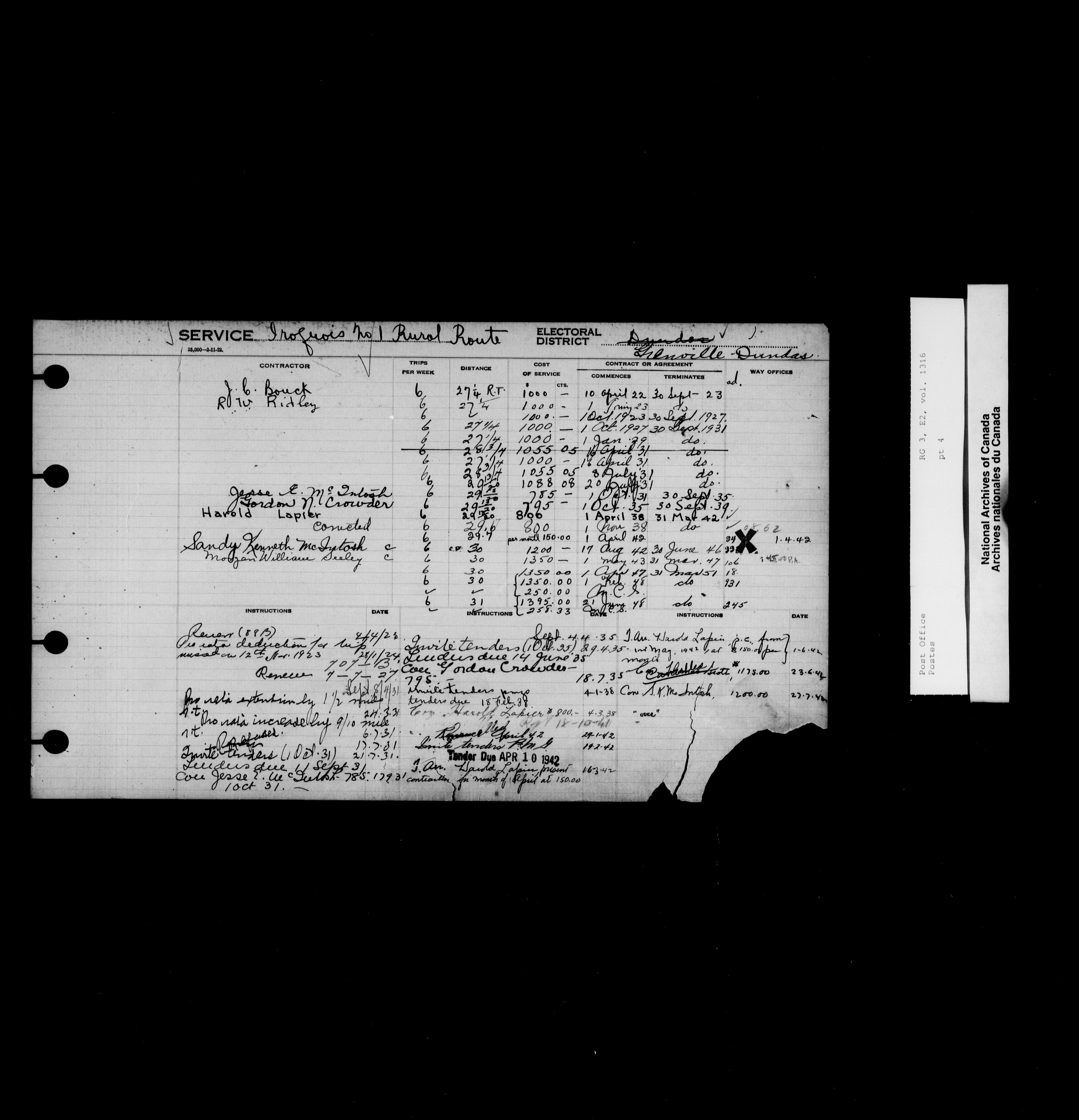 Post Office Department, Transportation Branch : Mail service contract registers, 1839-1980 - 9979