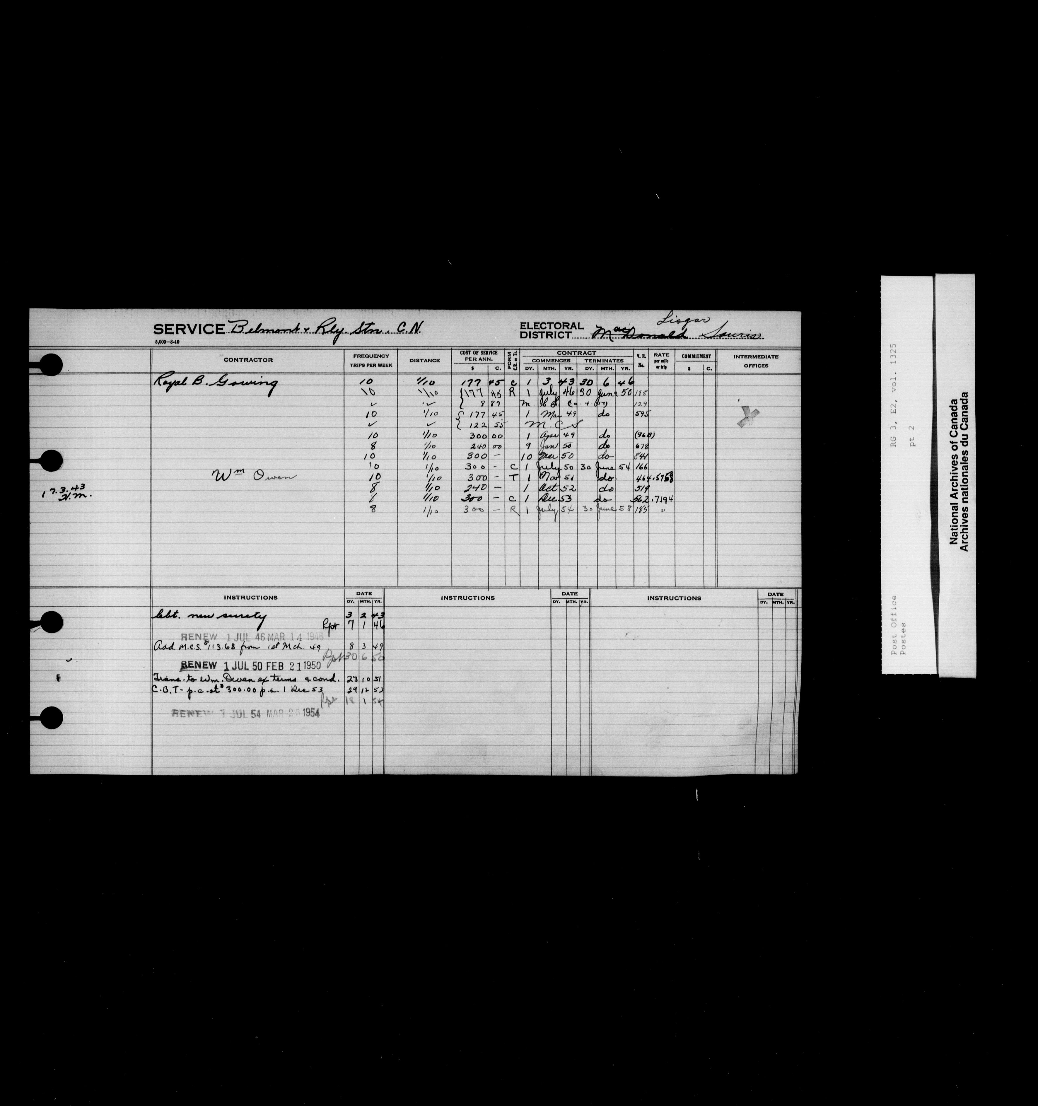 Post Office Department, Transportation Branch : Mail service contract registers, 1839-1980 - 9983