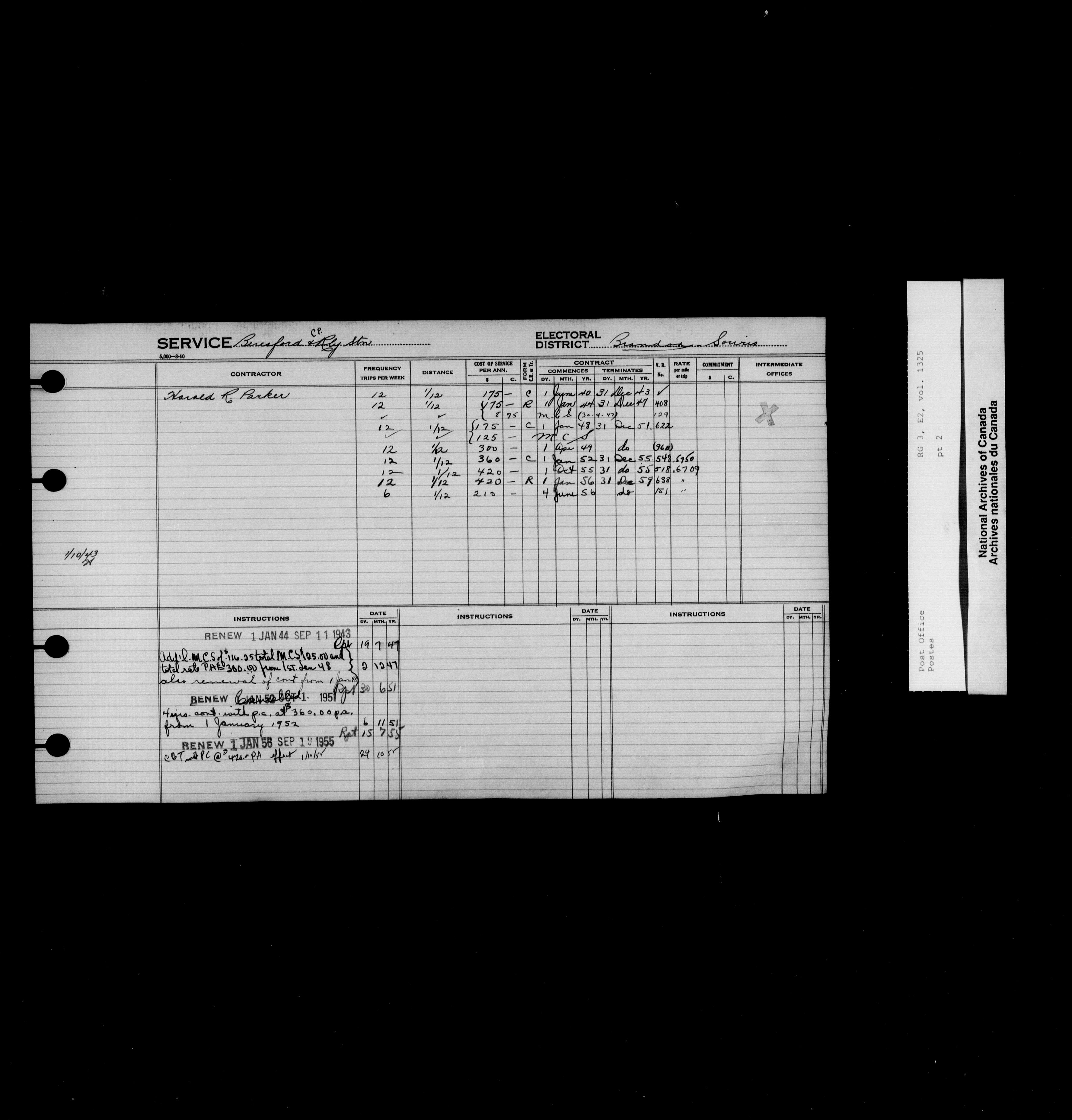 Post Office Department, Transportation Branch : Mail service contract registers, 1839-1980 - 9983
