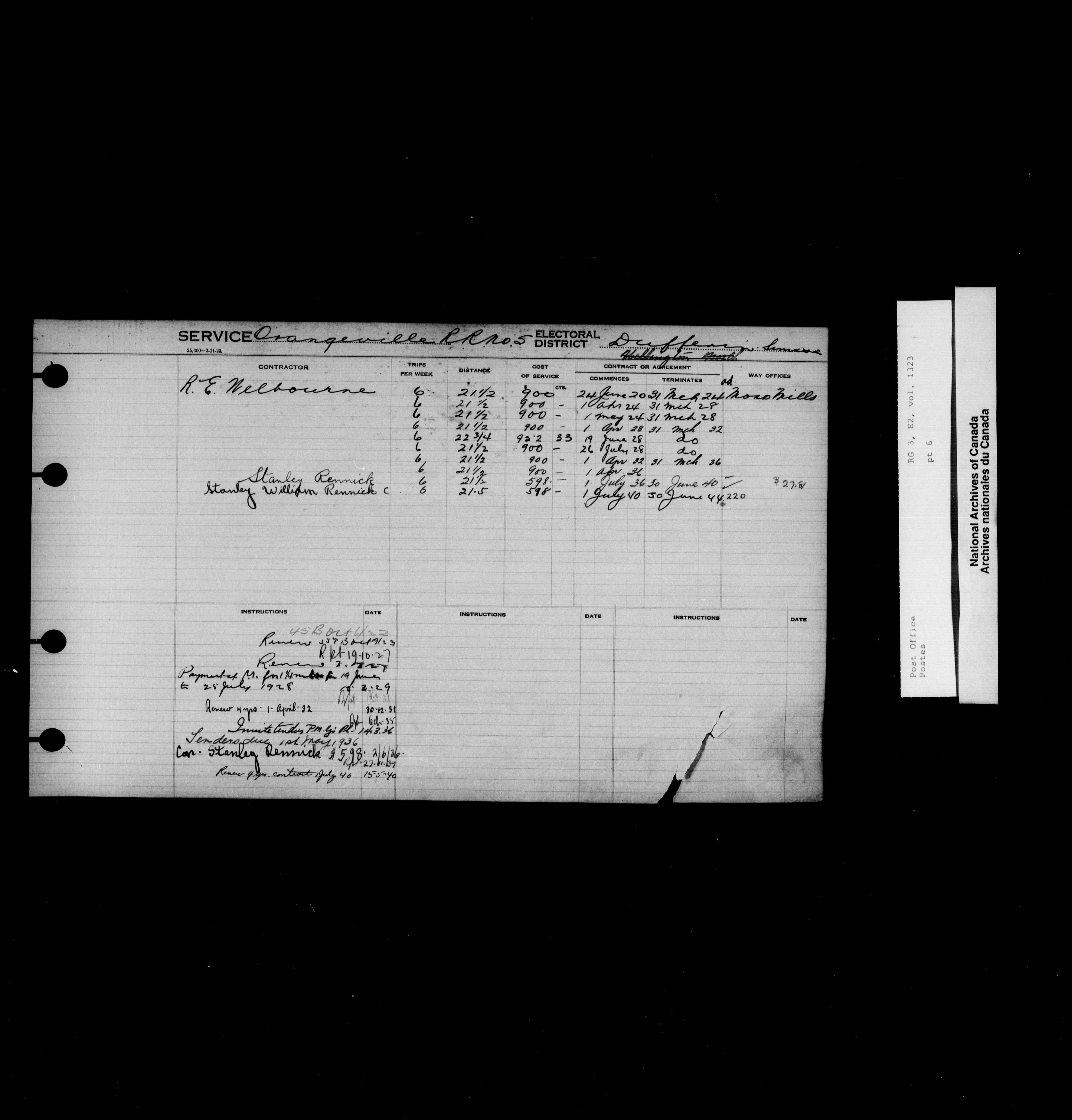 Post Office Department, Transportation Branch : Mail service contract registers, 1839-1980 - 9983