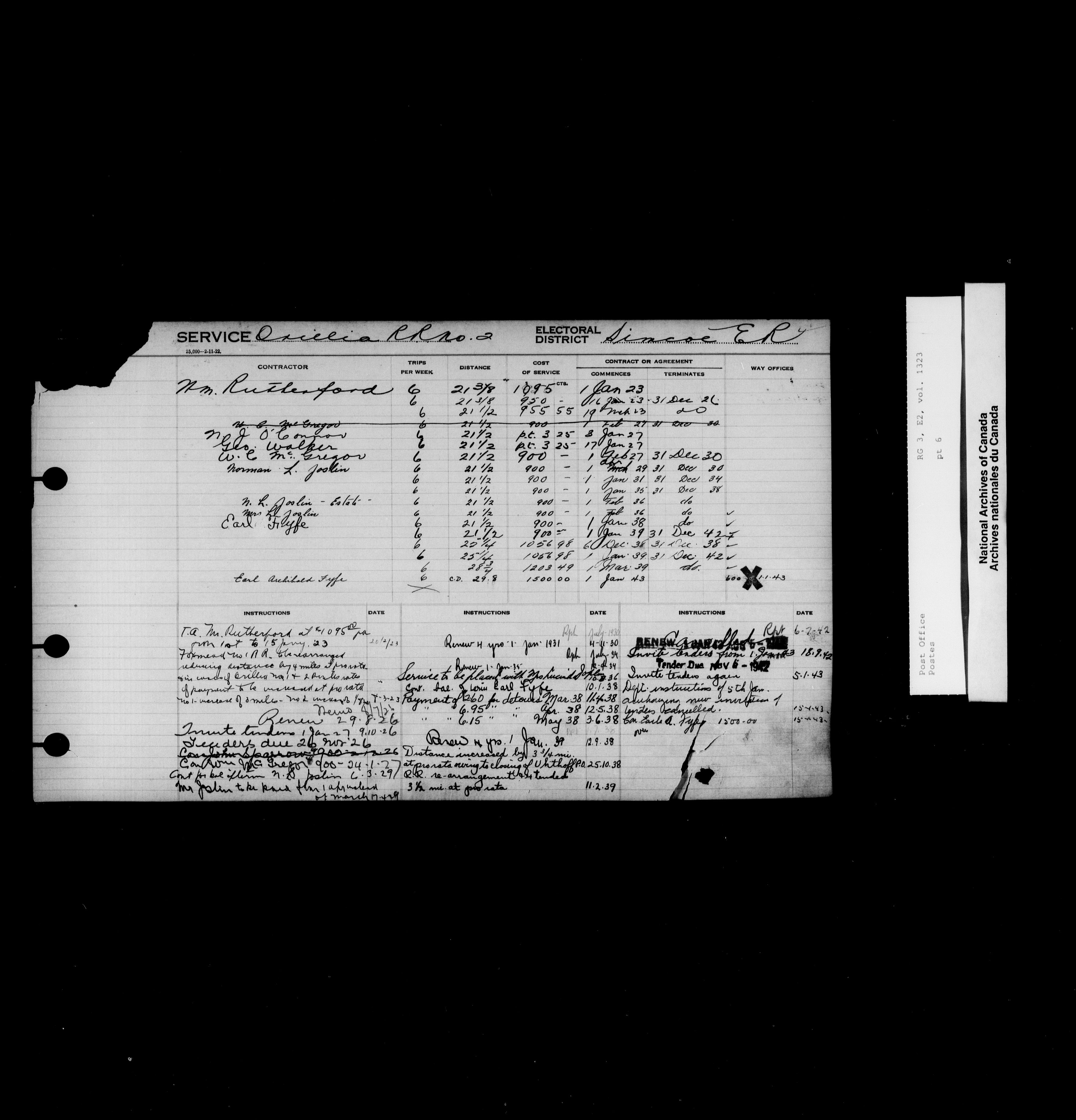 Post Office Department, Transportation Branch : Mail service contract registers, 1839-1980 - 9983