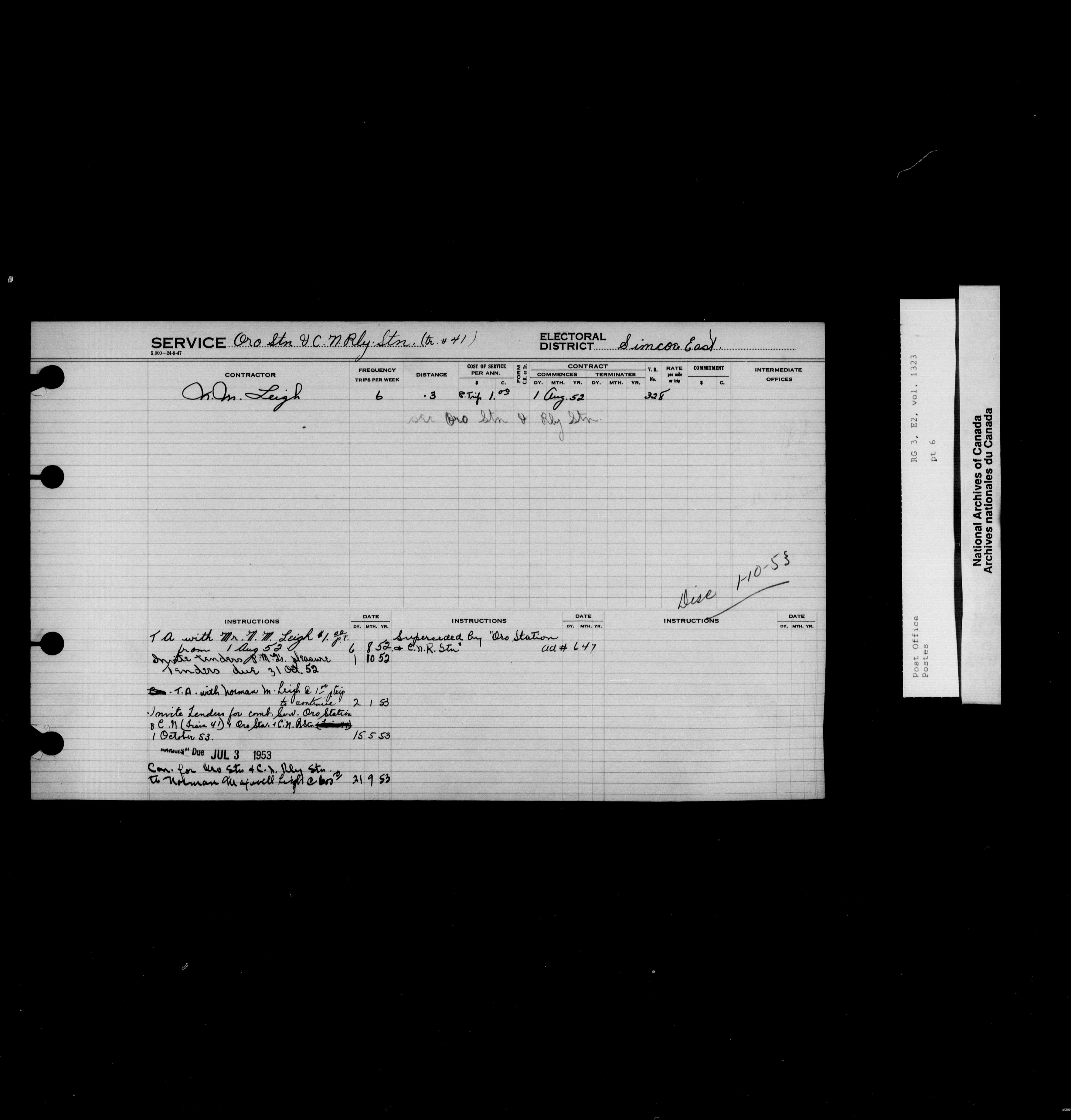 Post Office Department, Transportation Branch : Mail service contract registers, 1839-1980 - 9983