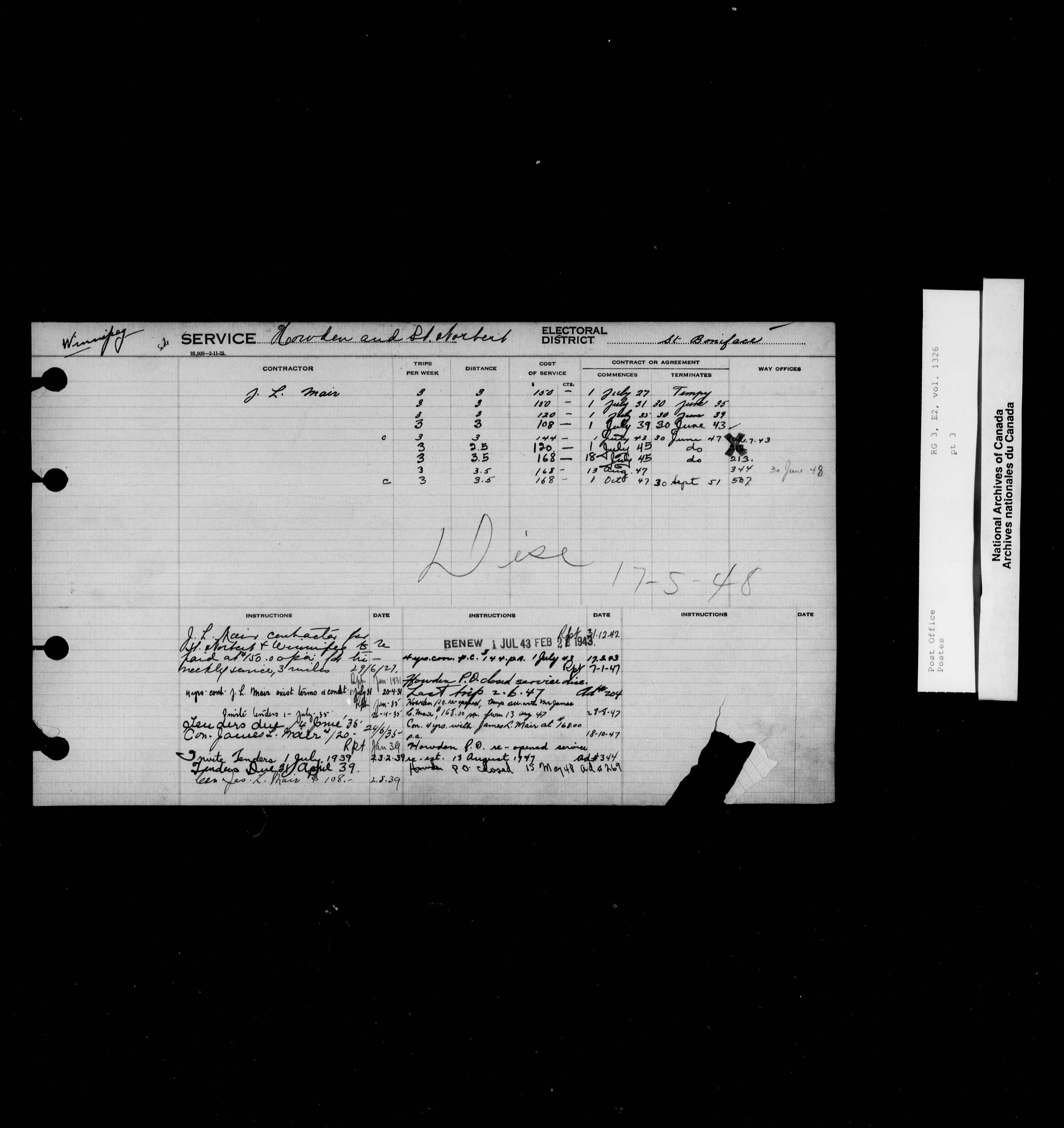 Post Office Department, Transportation Branch : Mail service contract registers, 1839-1980 - 9985