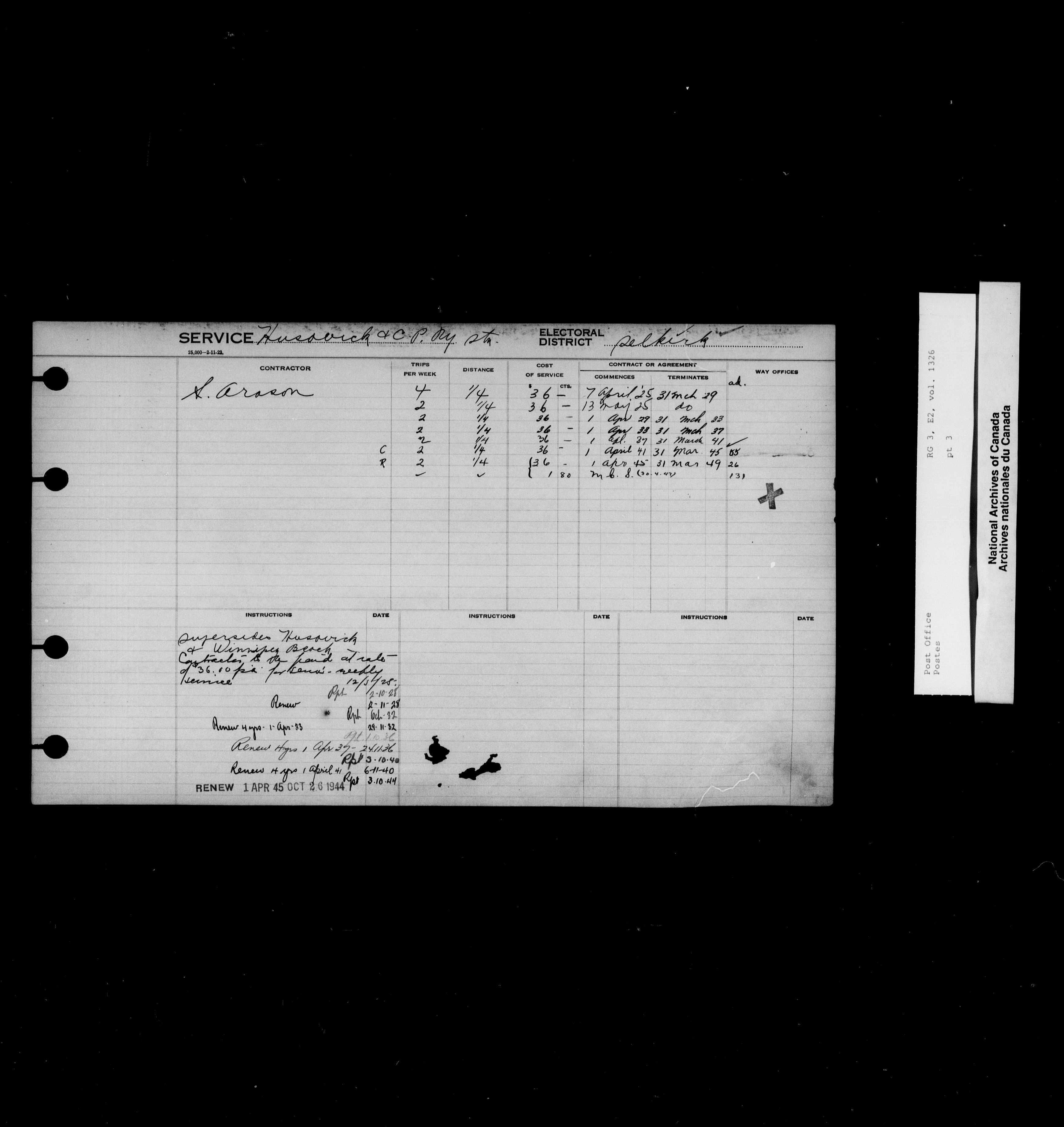 Post Office Department, Transportation Branch : Mail service contract registers, 1839-1980 - 9985