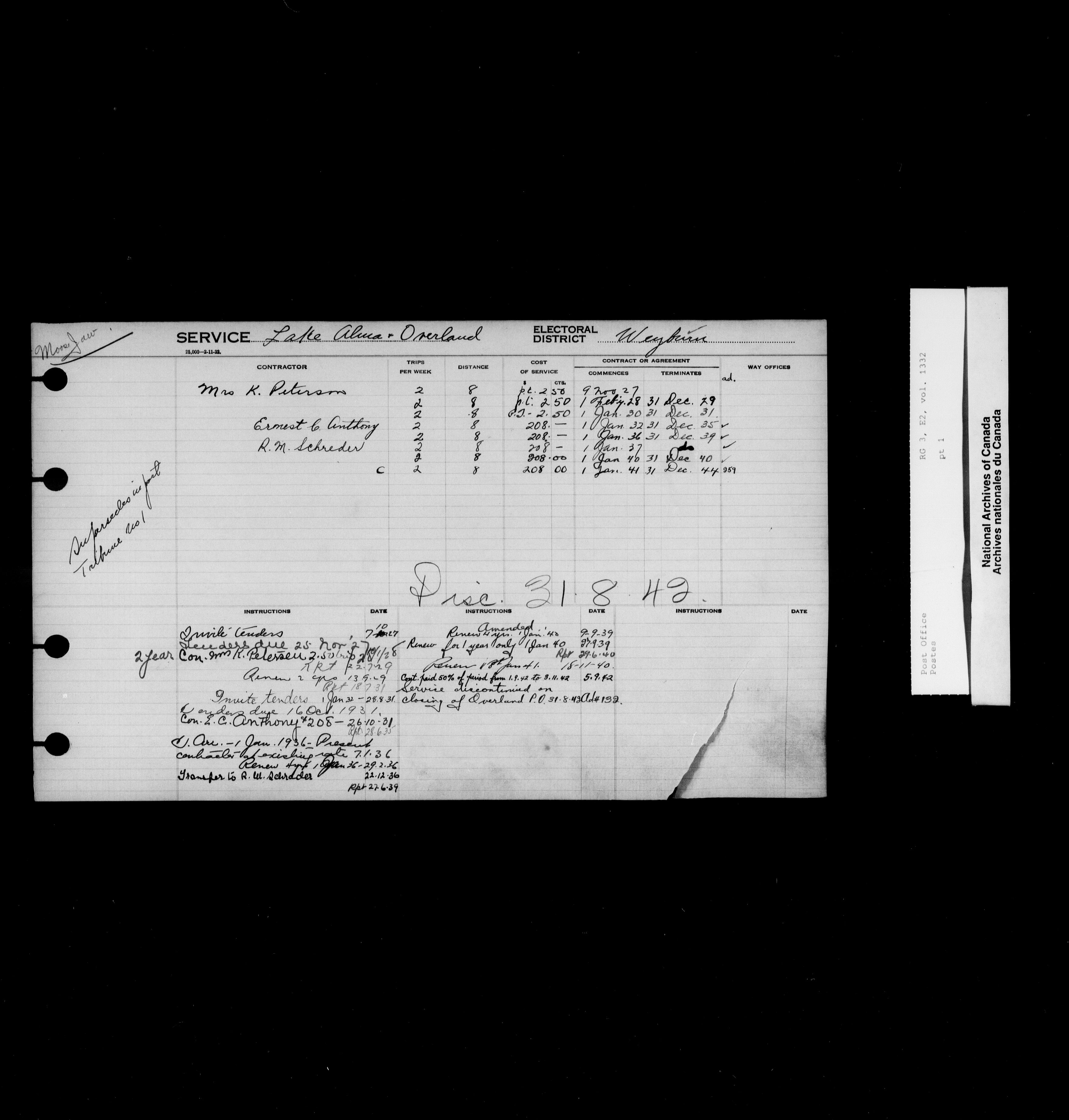 Post Office Department, Transportation Branch : Mail service contract registers, 1839-1980 - 9988