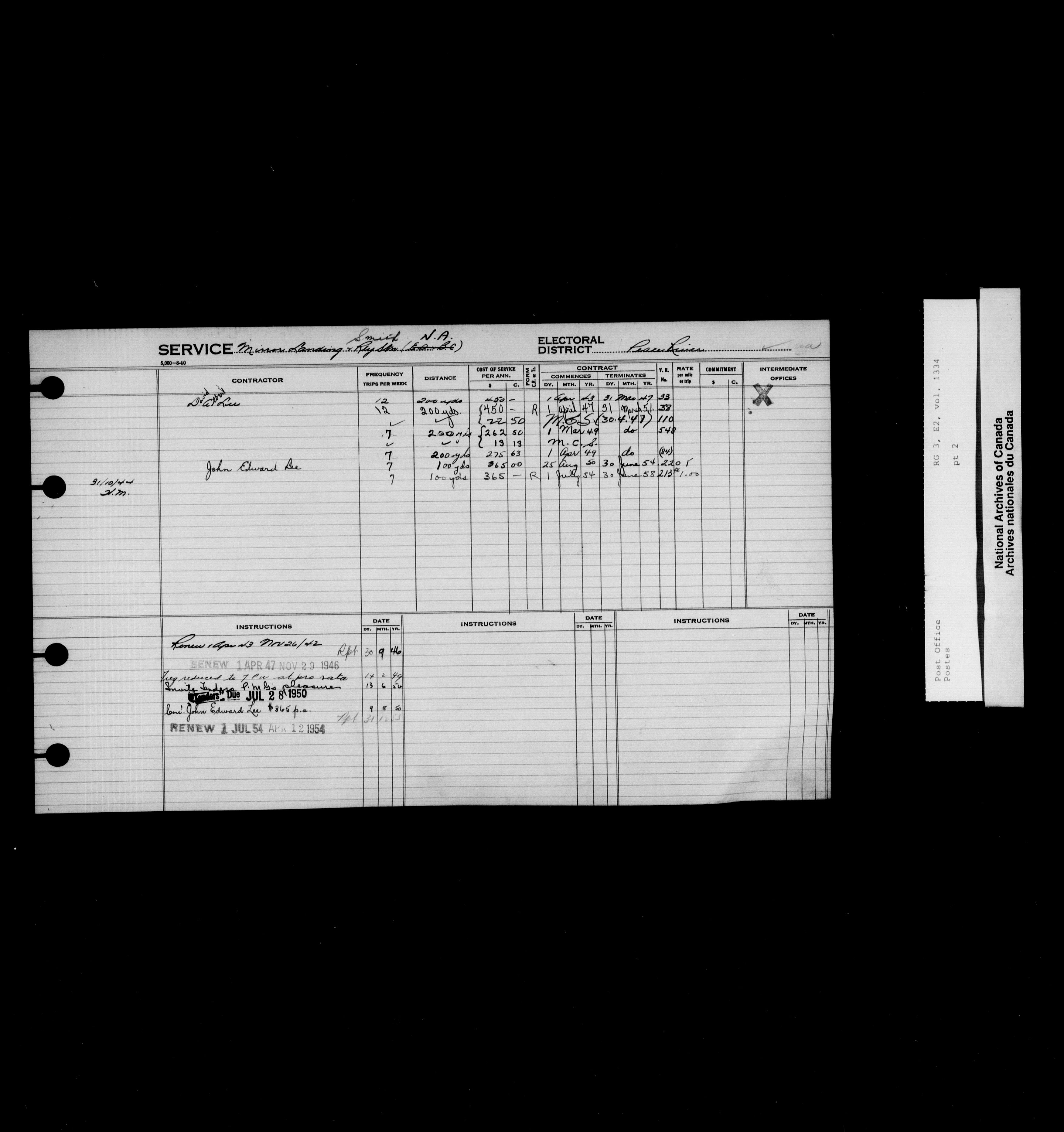 Post Office Department, Transportation Branch : Mail service contract registers, 1839-1980 - 9989
