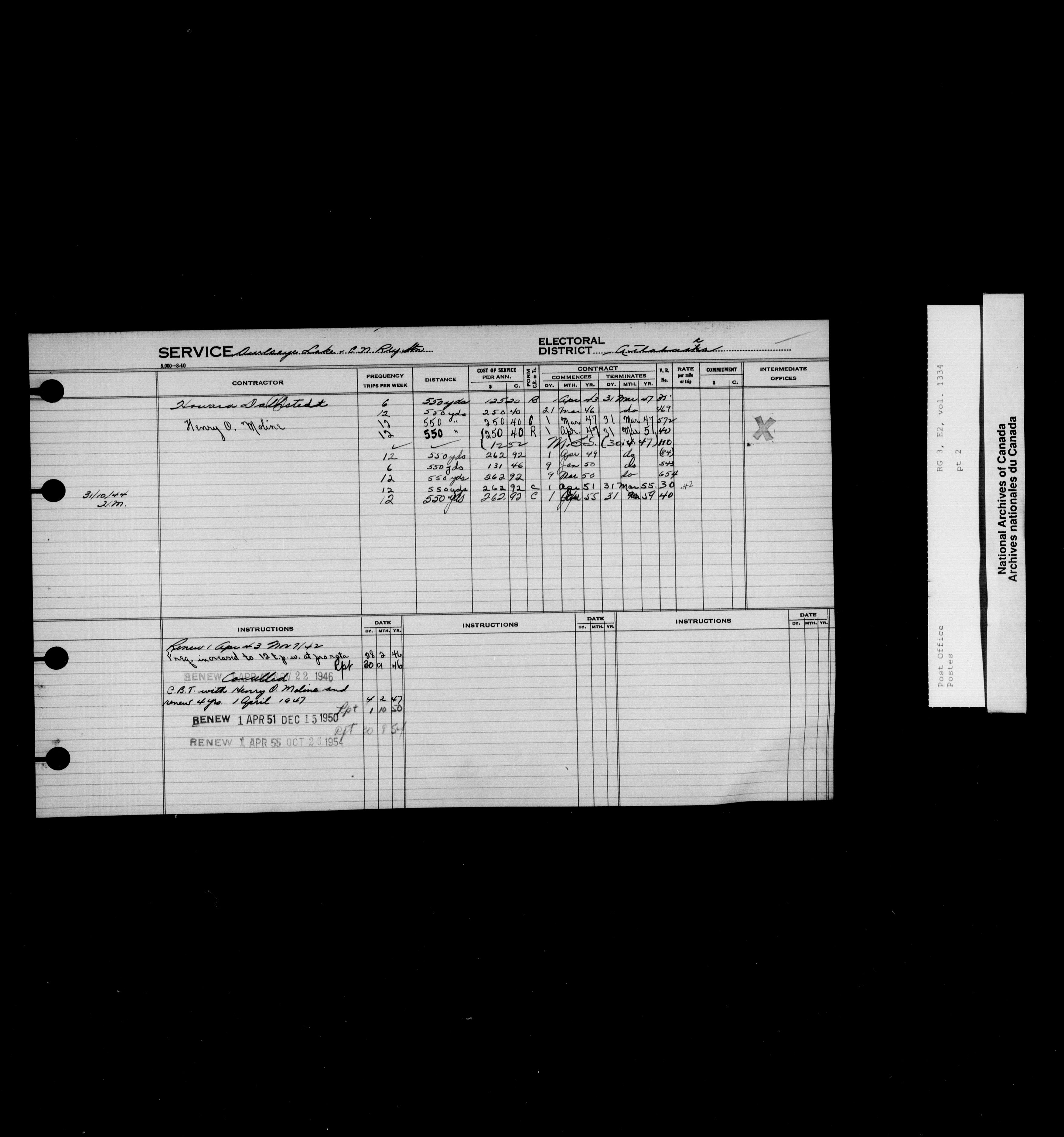 Post Office Department, Transportation Branch : Mail service contract registers, 1839-1980 - 9989