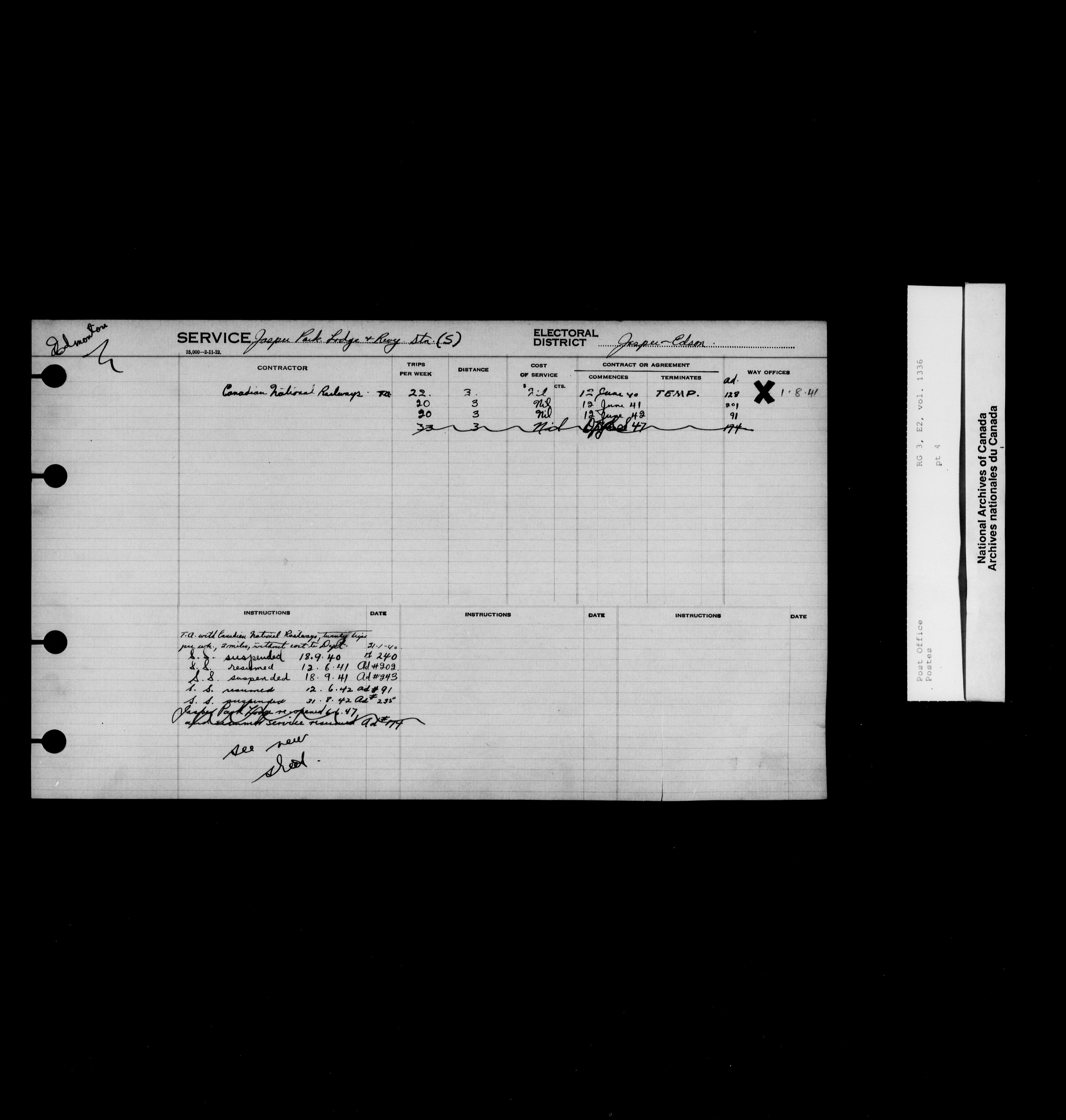 Post Office Department, Transportation Branch : Mail service contract registers, 1839-1980 - 9990