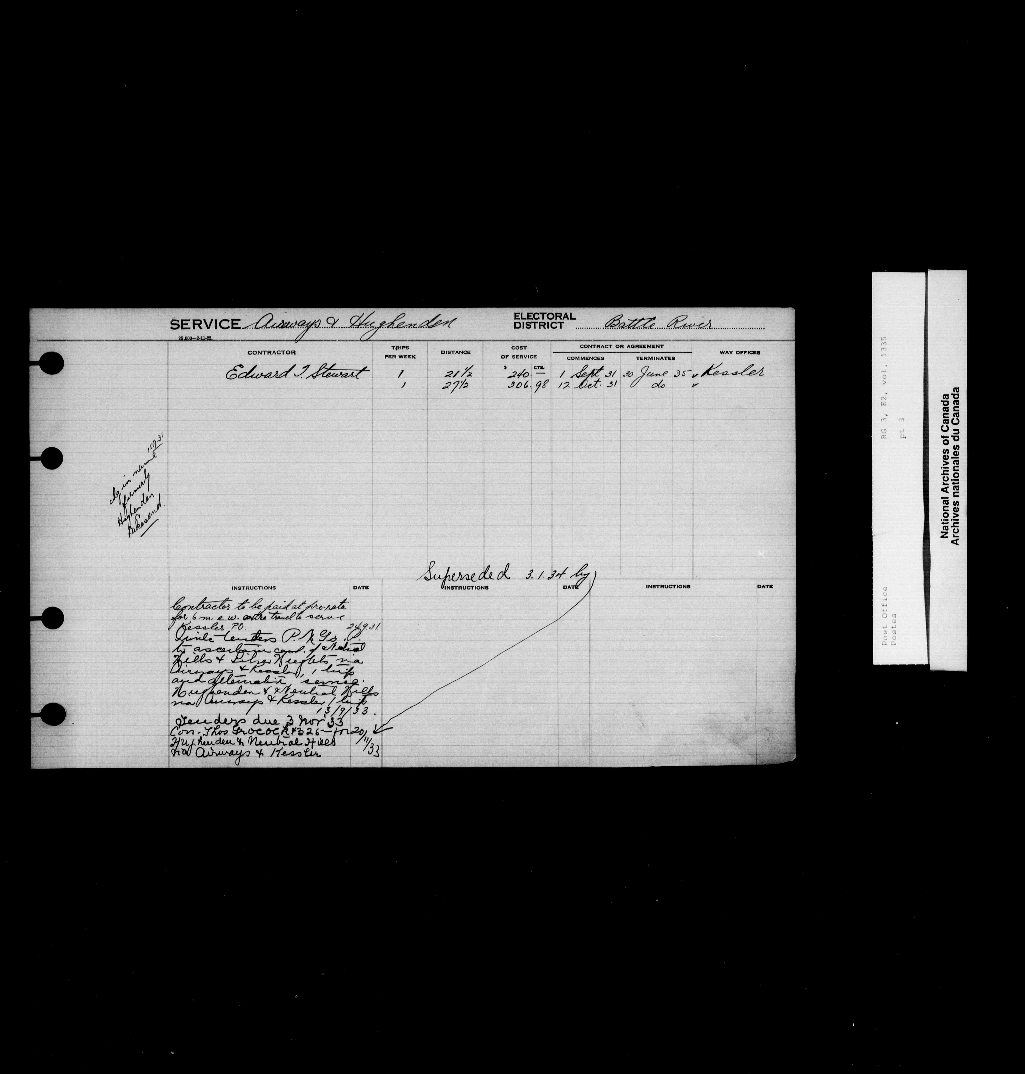 Post Office Department, Transportation Branch : Mail service contract registers, 1839-1980 - 9990
