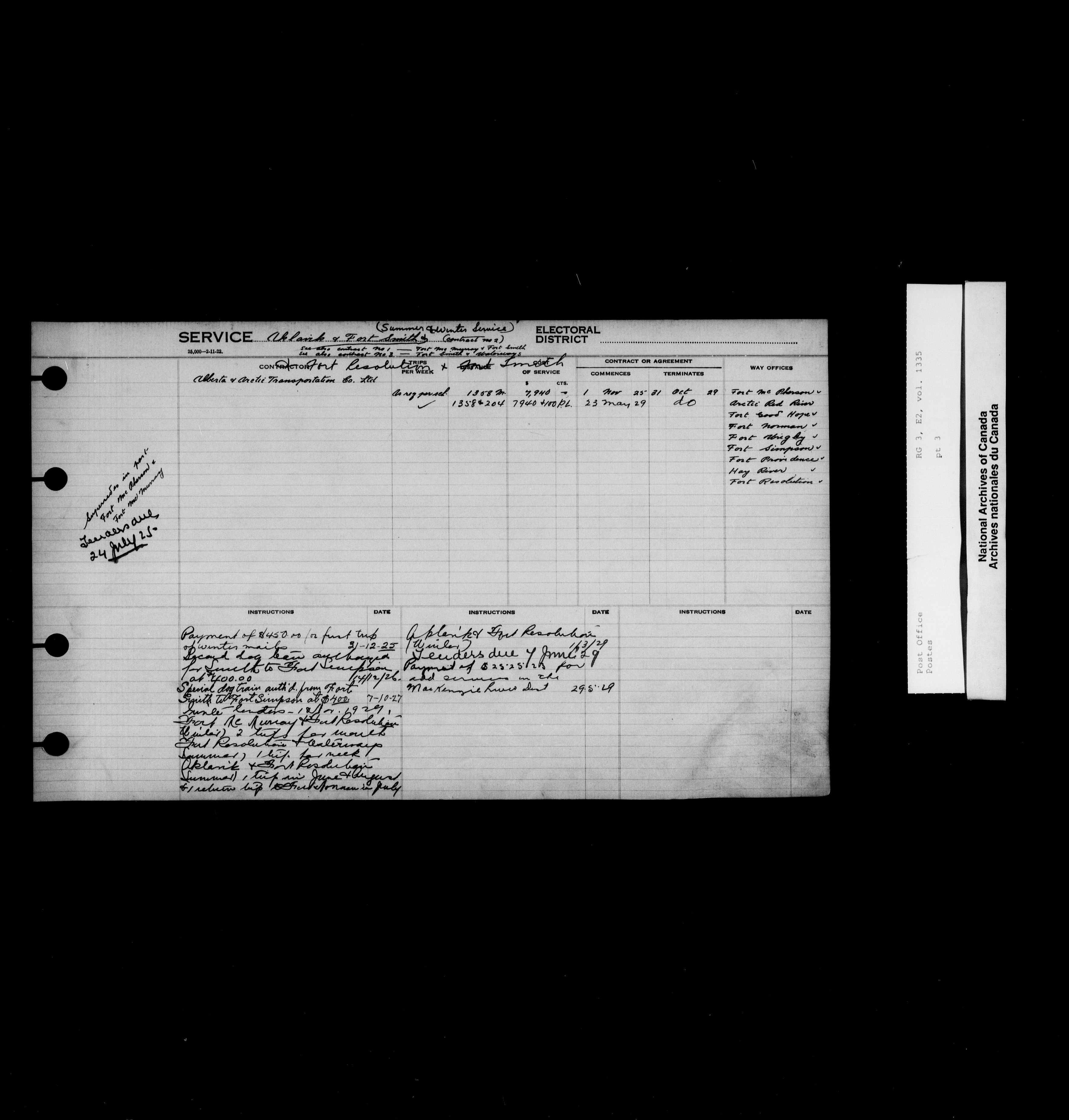 Post Office Department, Transportation Branch : Mail service contract registers, 1839-1980 - 9990