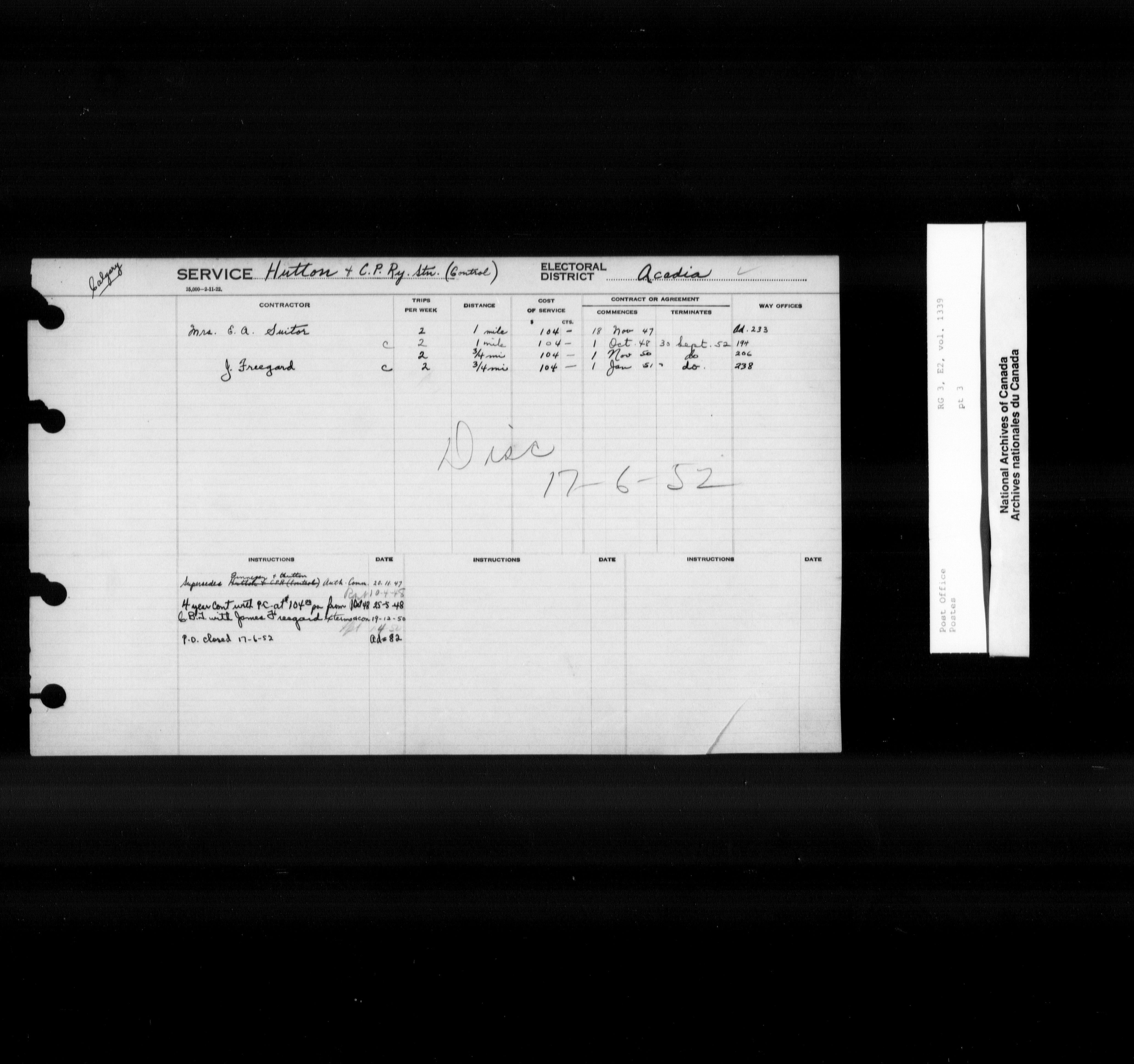 Post Office Department, Transportation Branch : Mail service contract registers, 1839-1980 - 9992