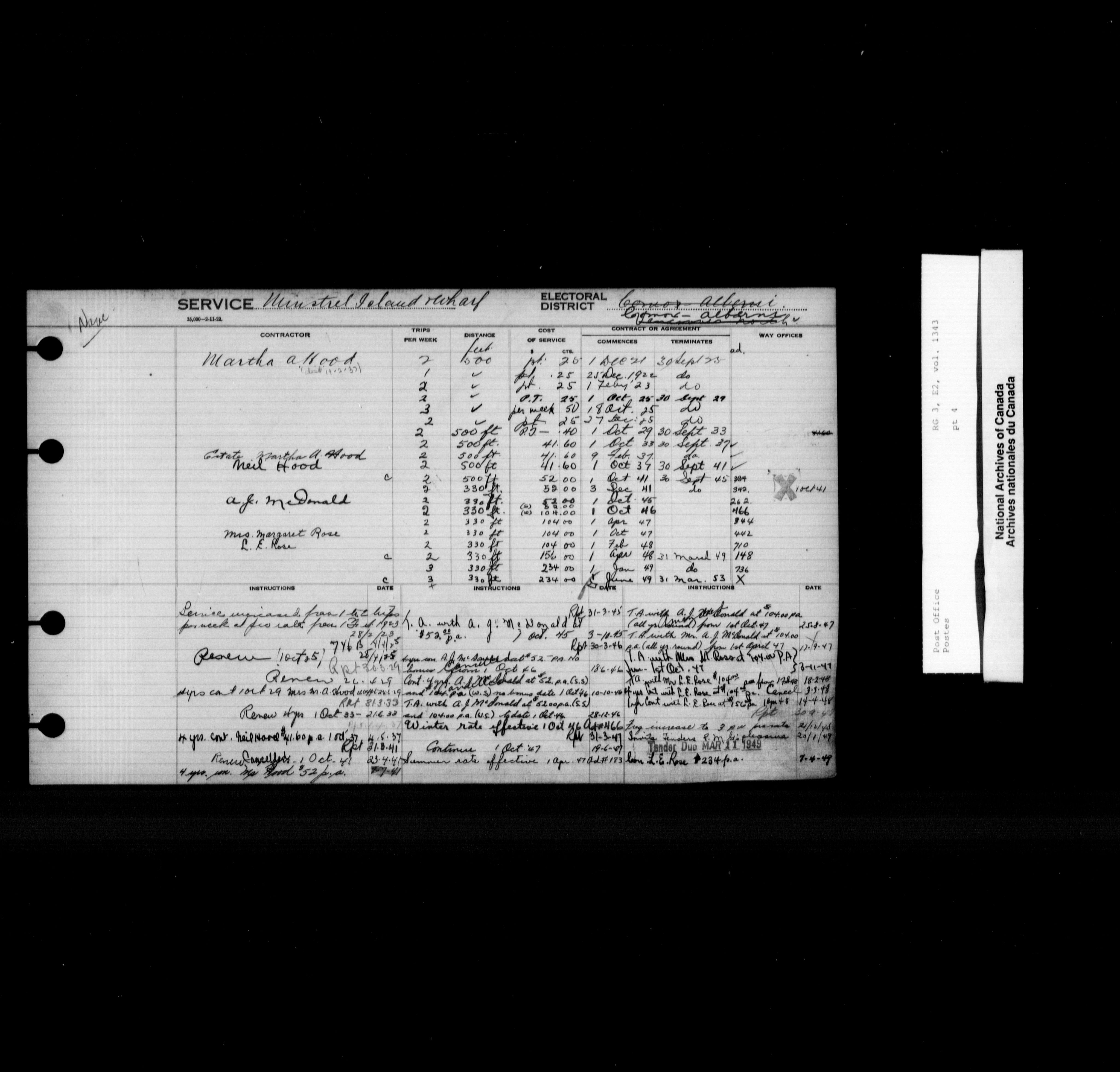 Post Office Department, Transportation Branch : Mail service contract registers, 1839-1980 - 9994