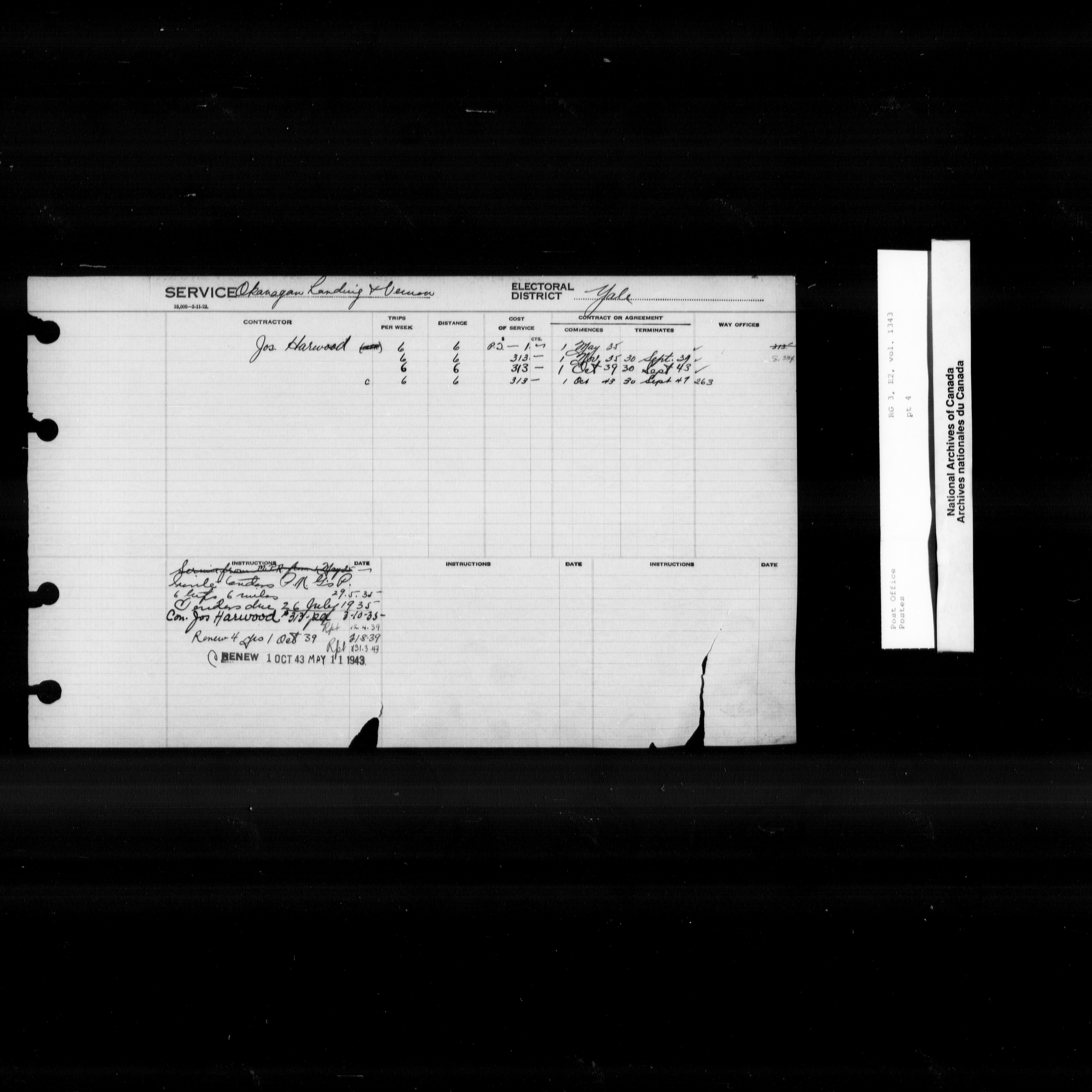 Post Office Department, Transportation Branch : Mail service contract registers, 1839-1980 - 9995