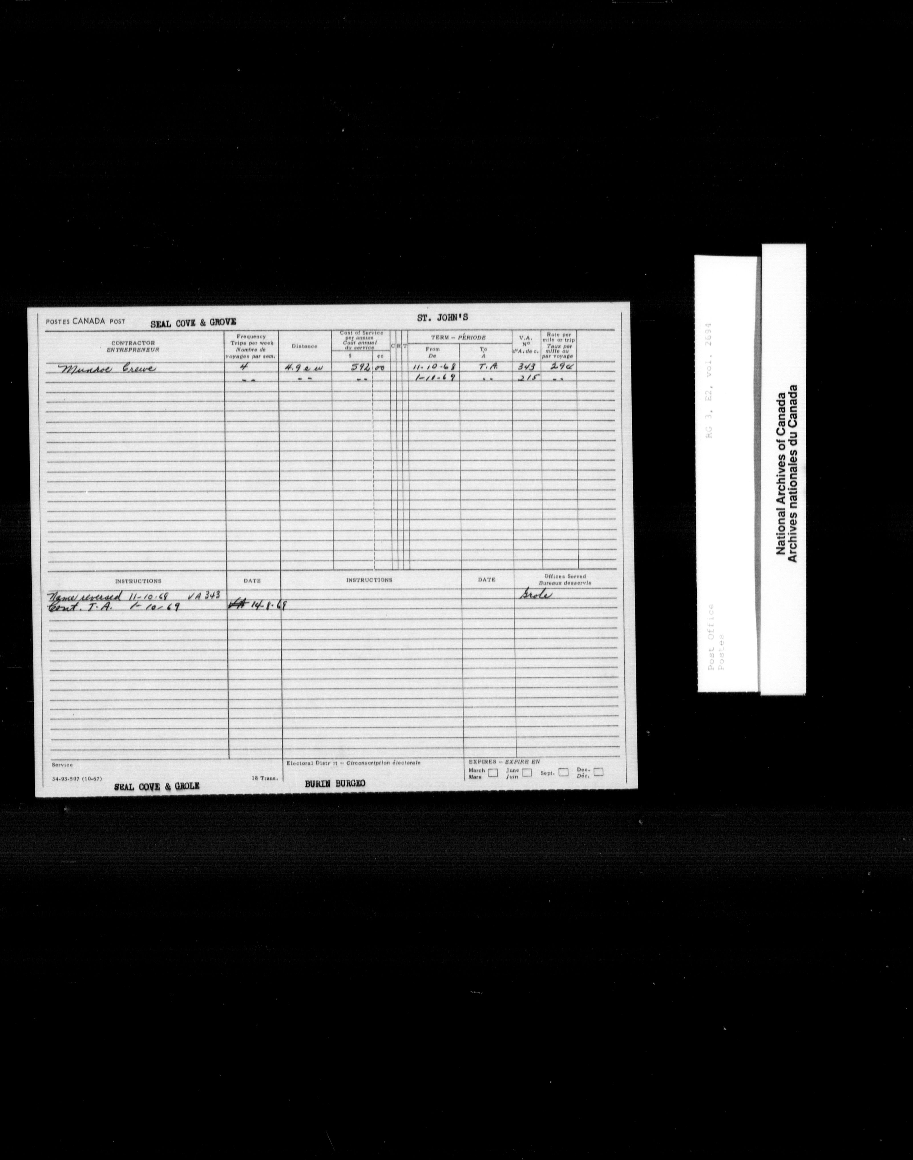 Post Office Department, Transportation Branch : Mail service contract registers, 1839-1980 - 9997